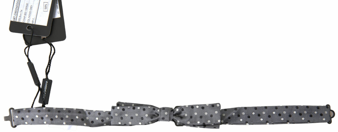 Dolce & Gabbana Gray Polka Dot Silk Adjustable Neck Men Papillon Bow Tie