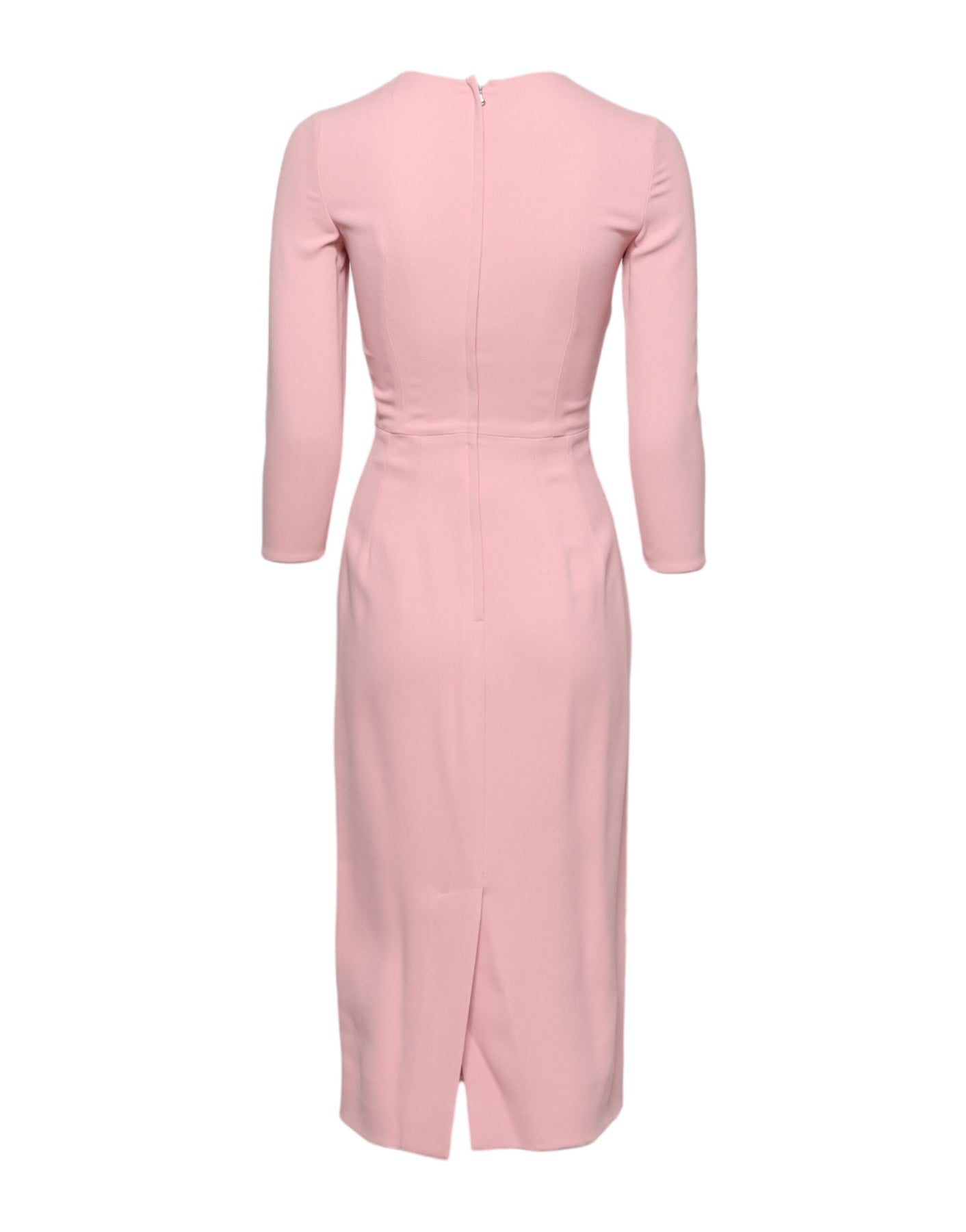 Pink Viscose 3/4 Sleeves Sheath Midi Dress