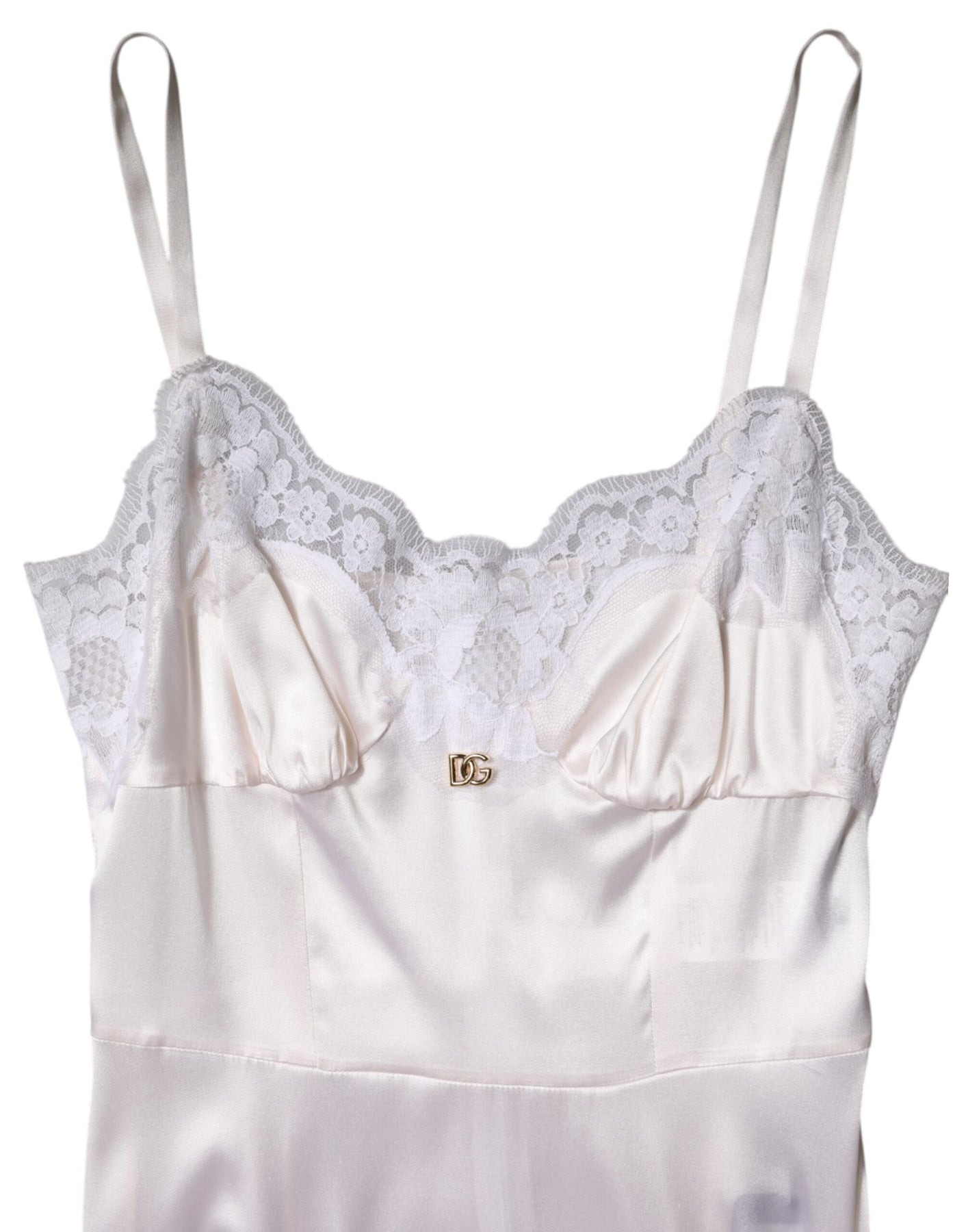 White Lace Gold DG Logo Silk Dress Sleepwear