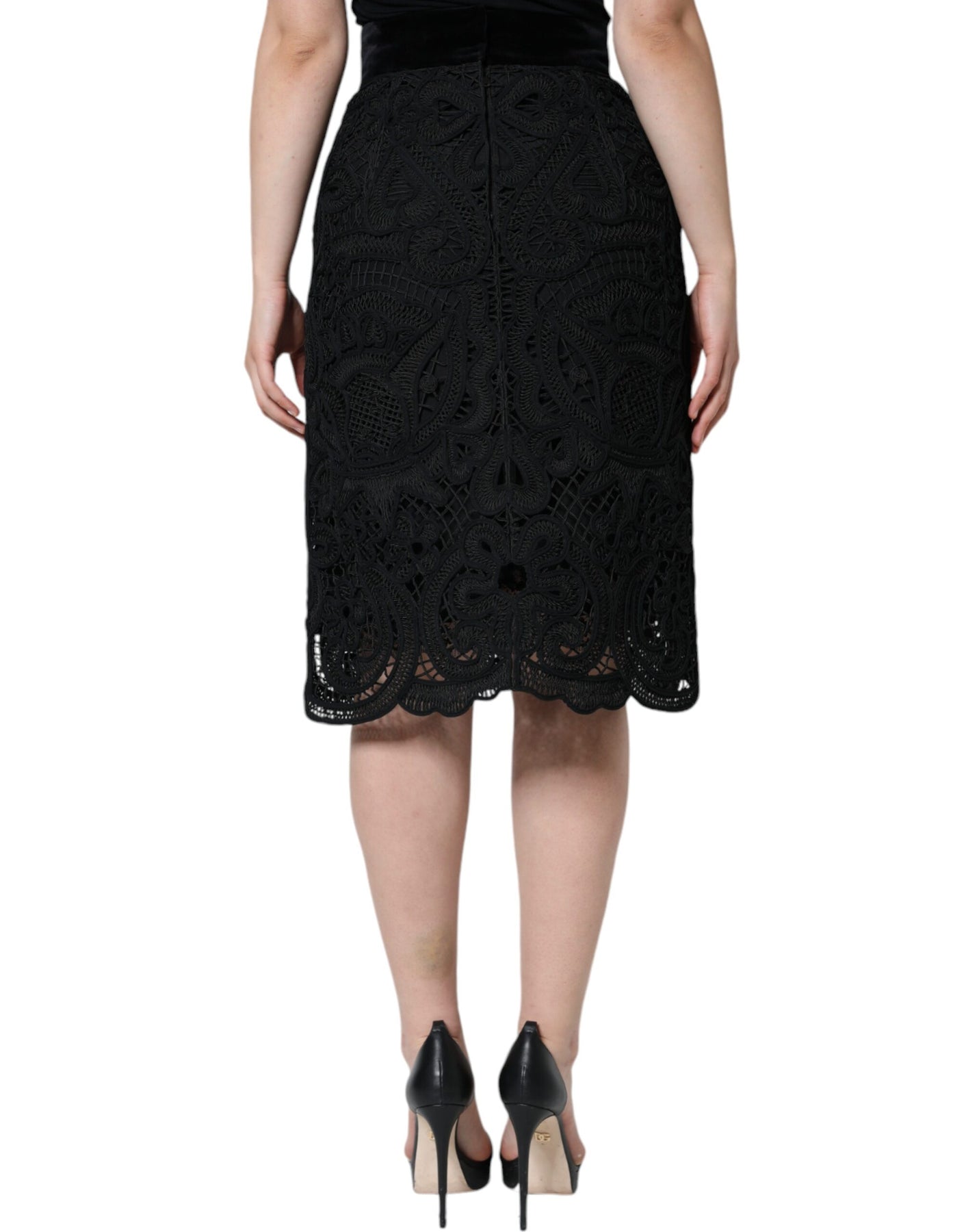 Black Floral Lace High Waist Pencil Cut Skirt