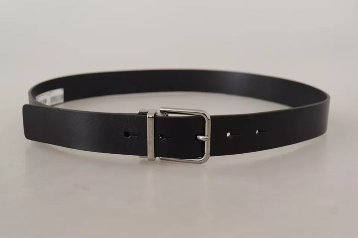 Black Calf Leather Logo Engraved Metal Buckle Belt