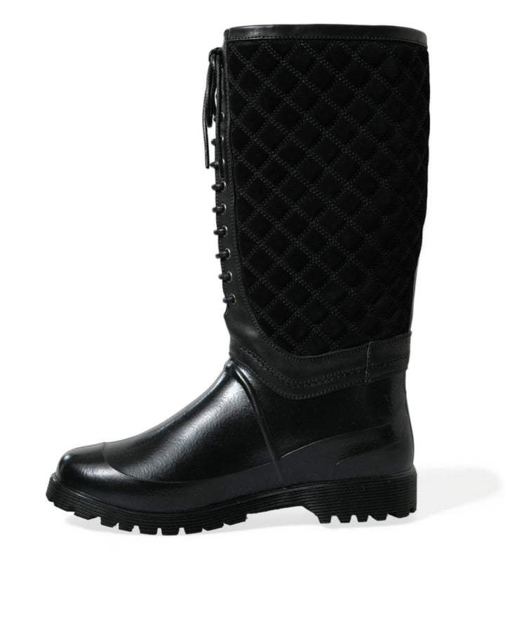 Dolce & Gabbana Black Chioggia Rubber Suede Rain Boots Shoes
