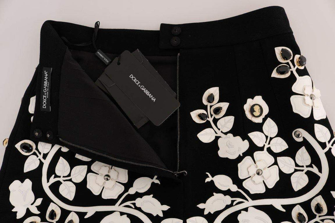 Gorgeous brand new with tags, 100% Authentic DOLCE & GABBANA black with white floral detailed baroque crystal pencil straight skirt.