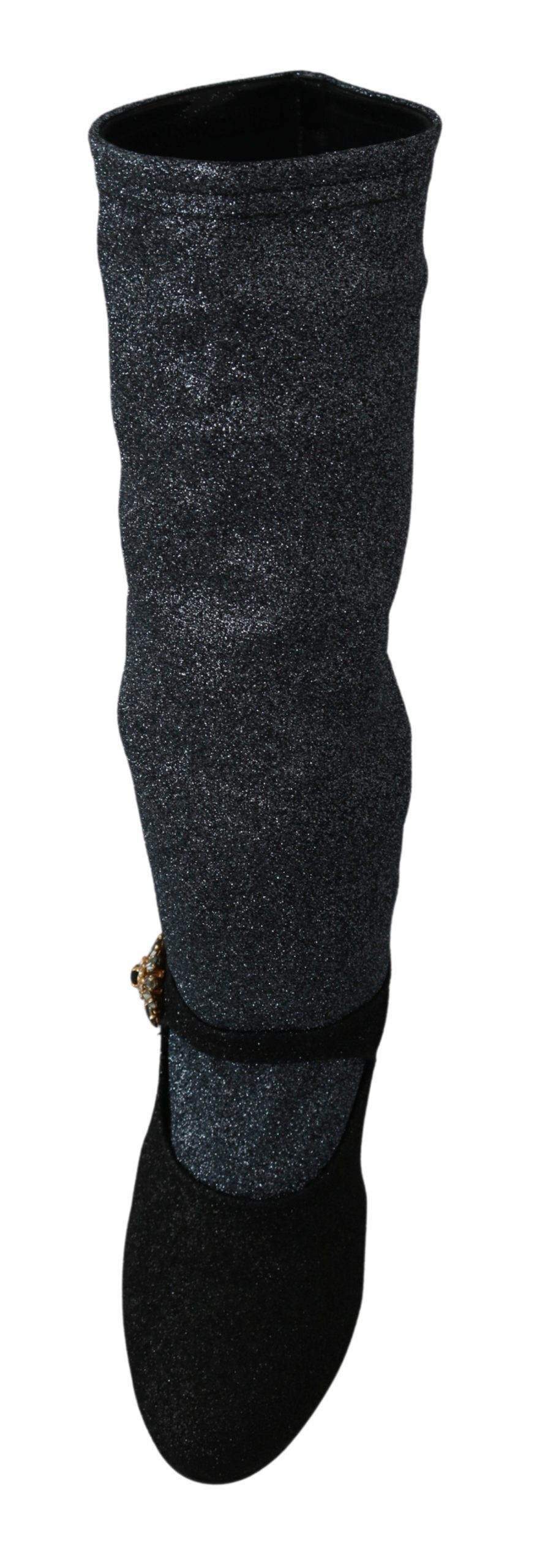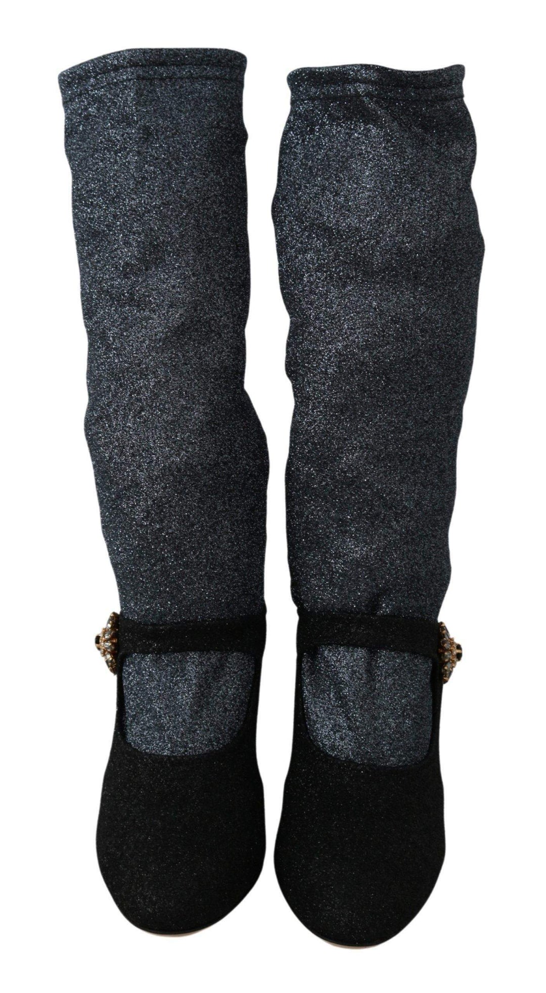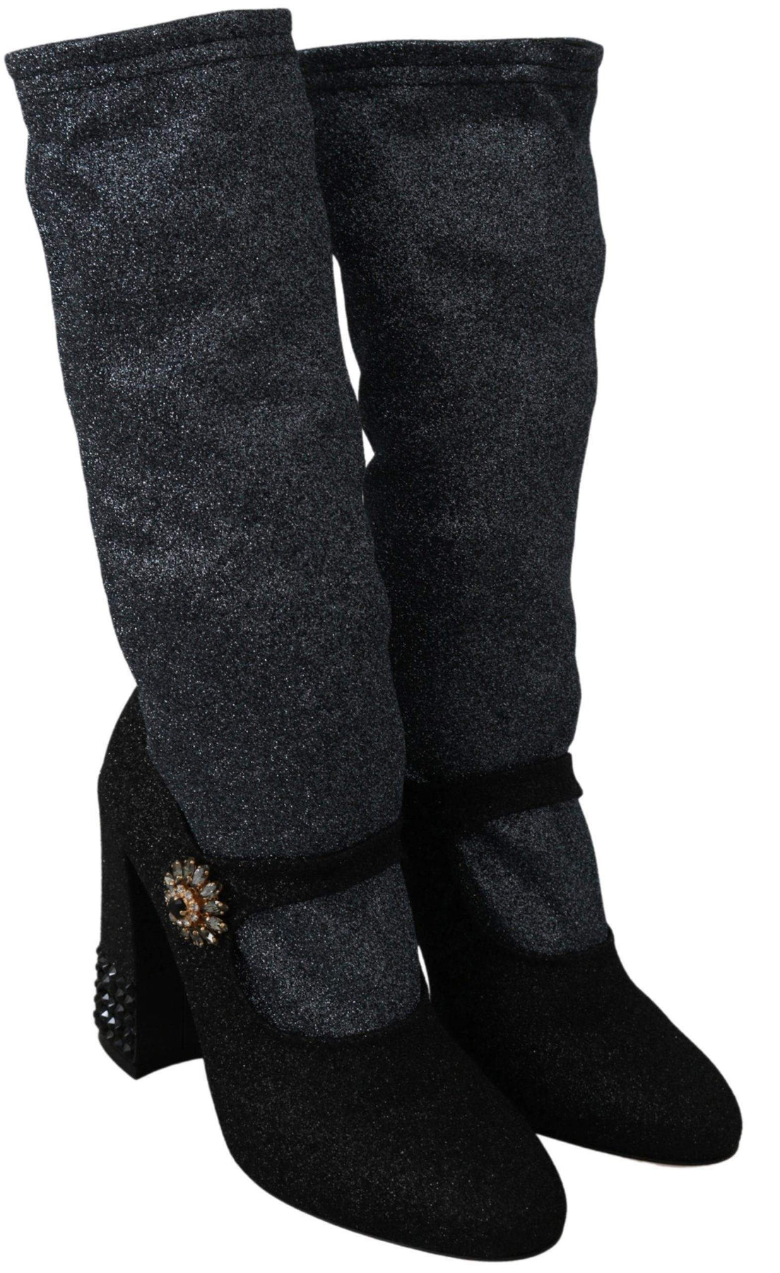 Dolce & Gabbana Black Crystal Mary Janes Booties Shoes