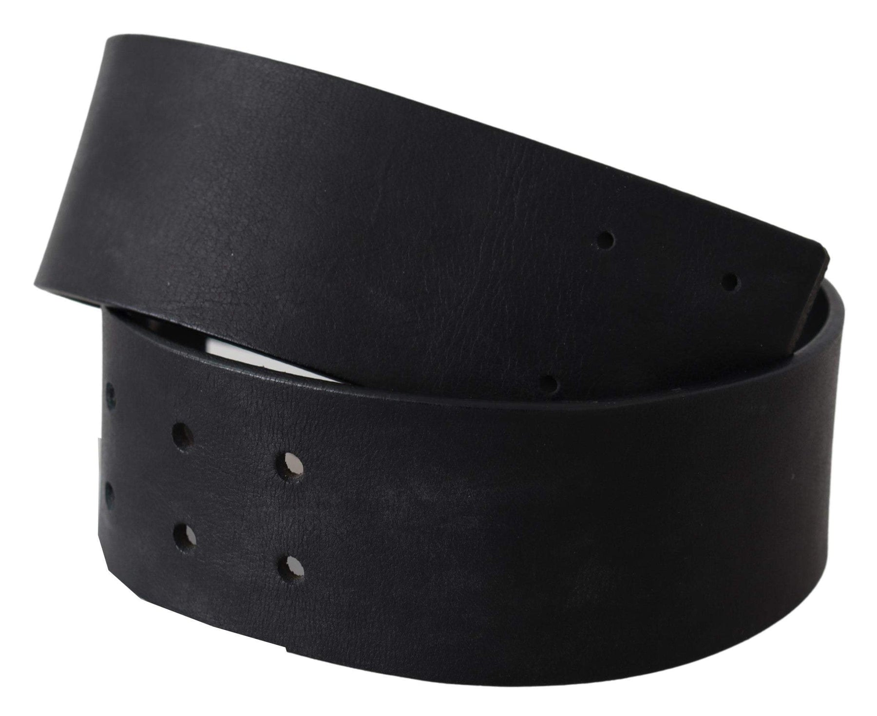 GF Ferre Black Genuine Leather Wide Logo Waist Belt