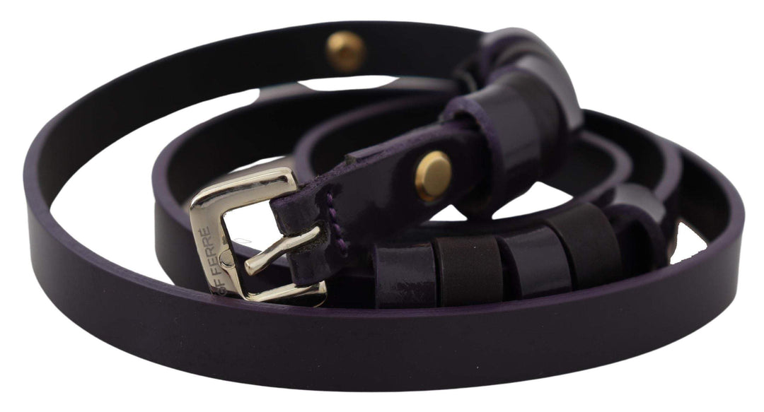 GF Ferre Black Leather Thin Gold Metal Chrome Buckle Belt