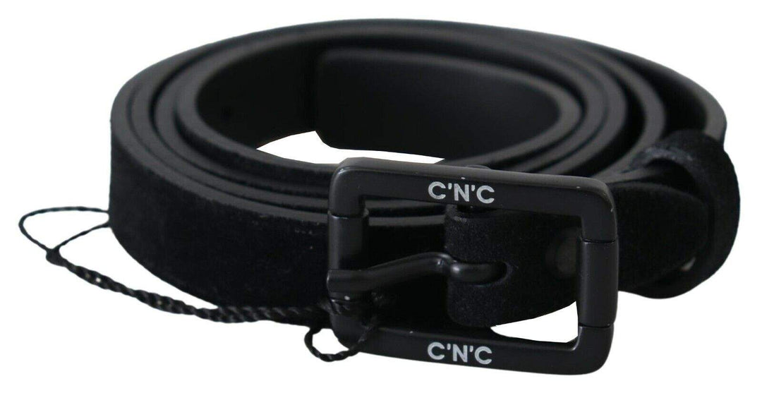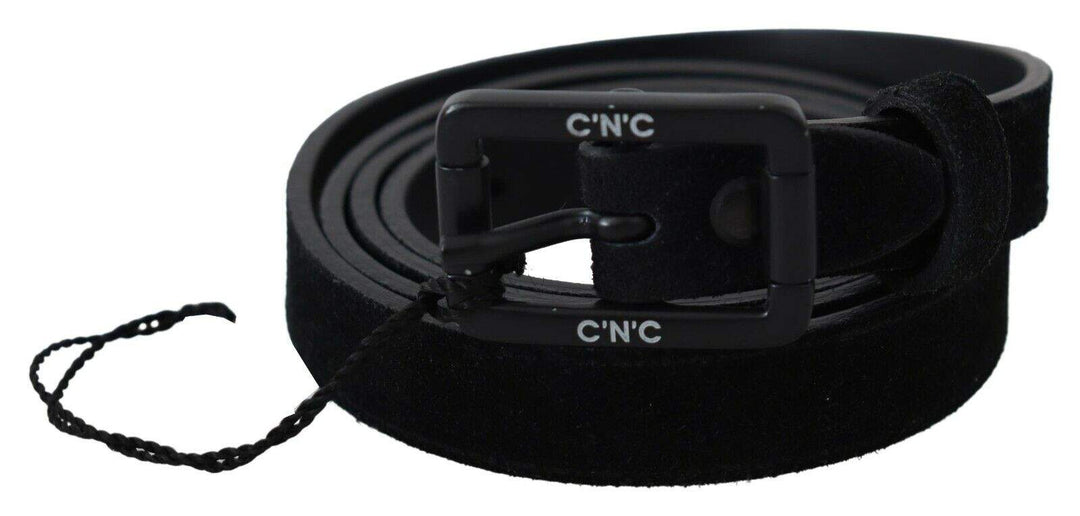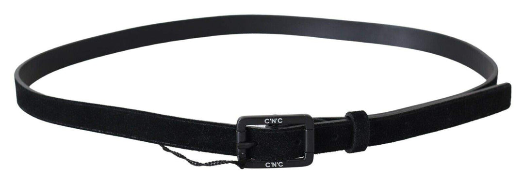 Costume National Black Leather Velvet Square Buckle Waist