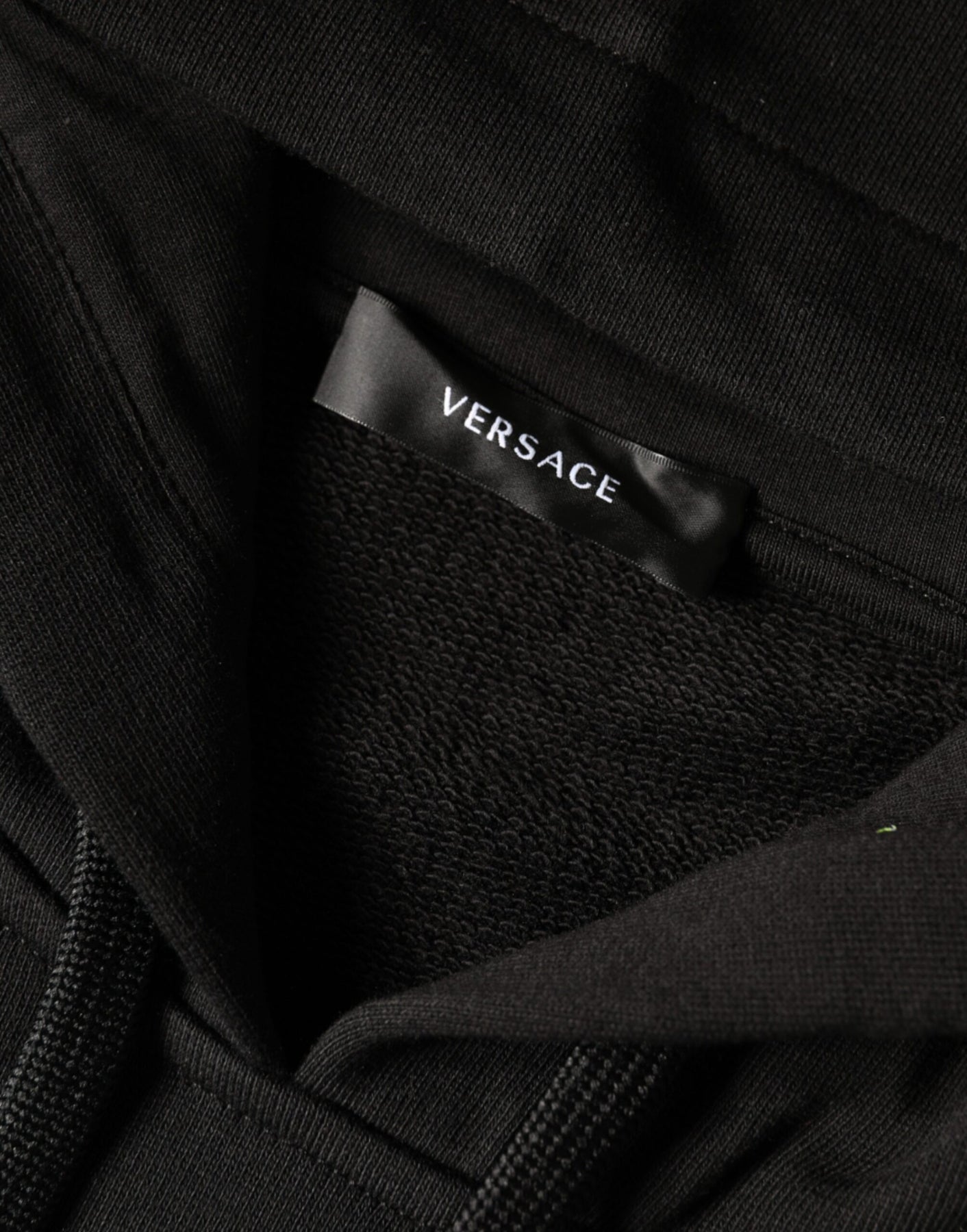 Absolutely stunning, 100% Authentic, brand new with tags VERSACE printed pullover sweater crafted from cotton features a long sleeves and hoodie.