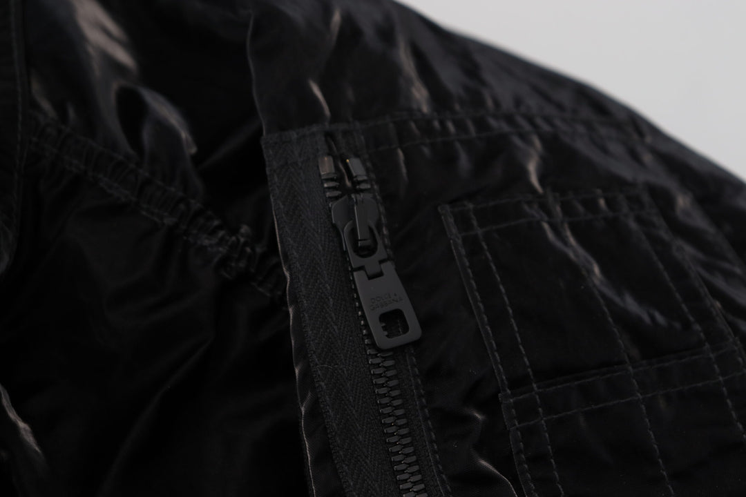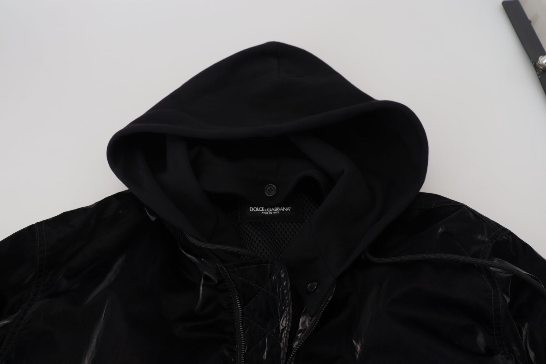 Dolce & Gabbana Black Nylon Hooded Full Zip Bomber Jacket