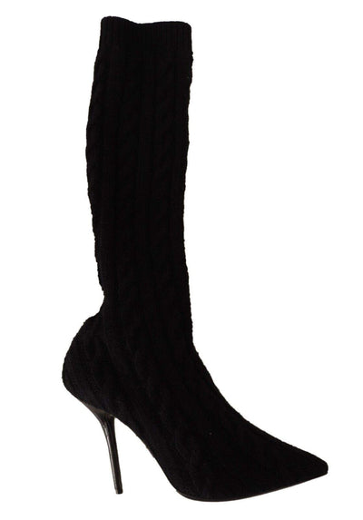 Dolce & Gabbana Black Stretch Socks Knee High Booties Shoes