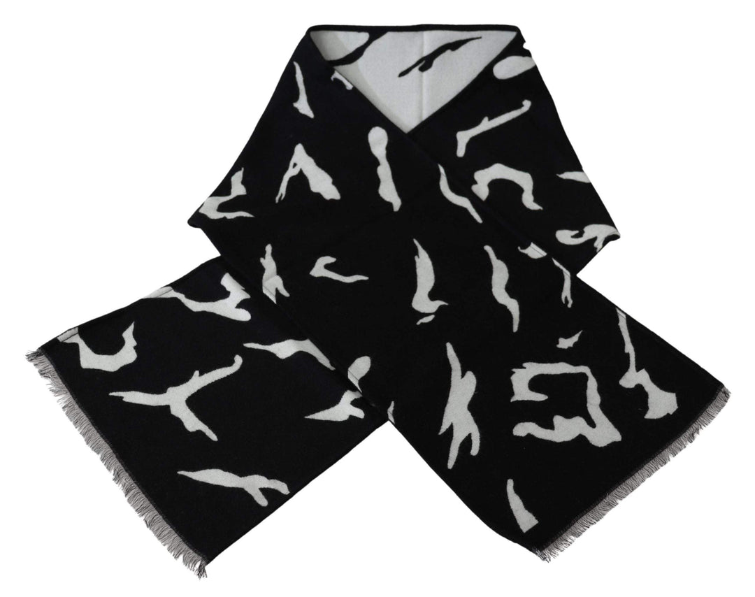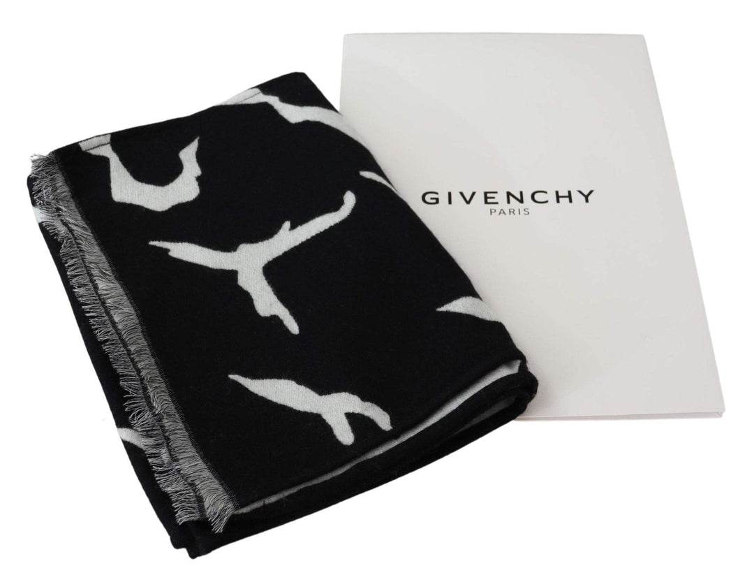 GIVENCHY Black White Wool Unisex Winter Warm Scarf Wrap Shawl