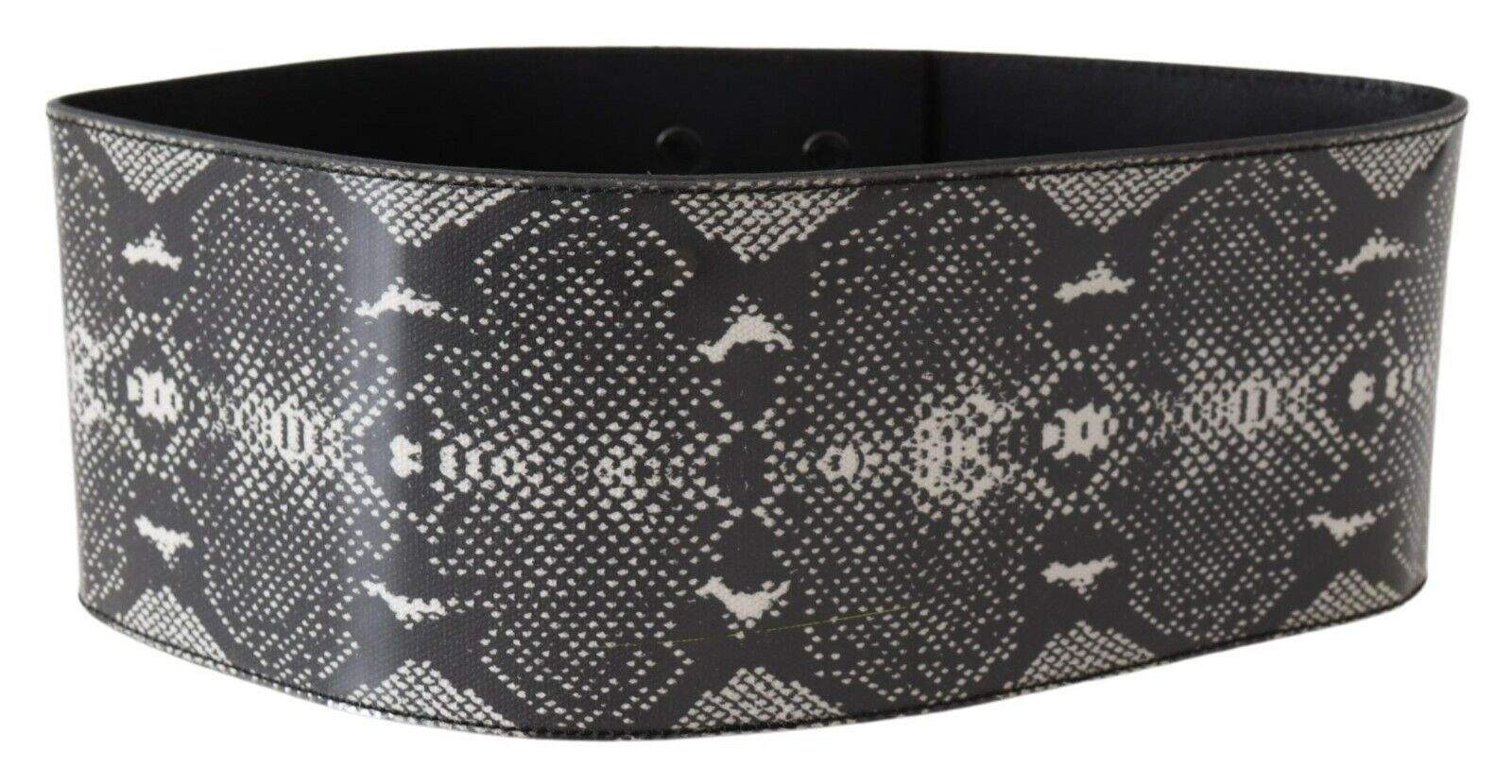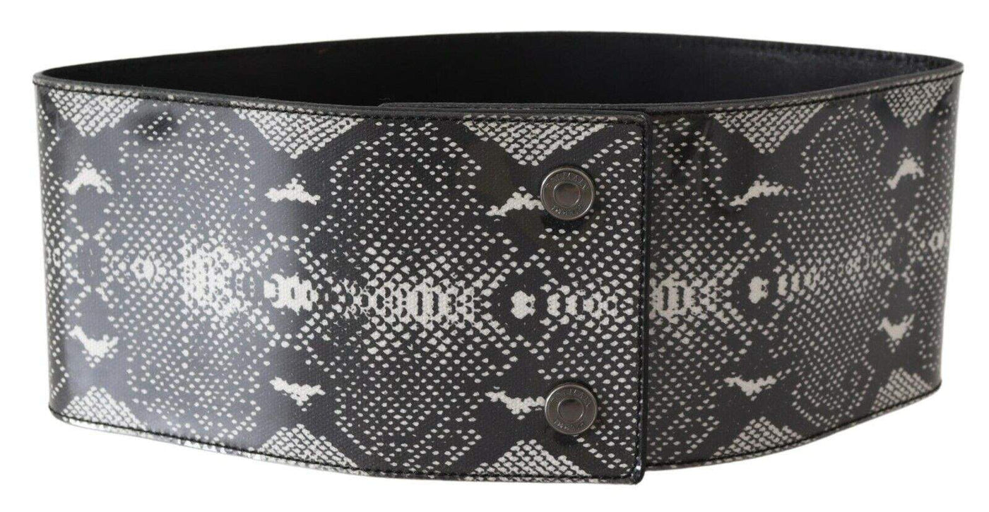 Ermanno Scervino Black Wide Leather Snakeskin Design Waist Belt