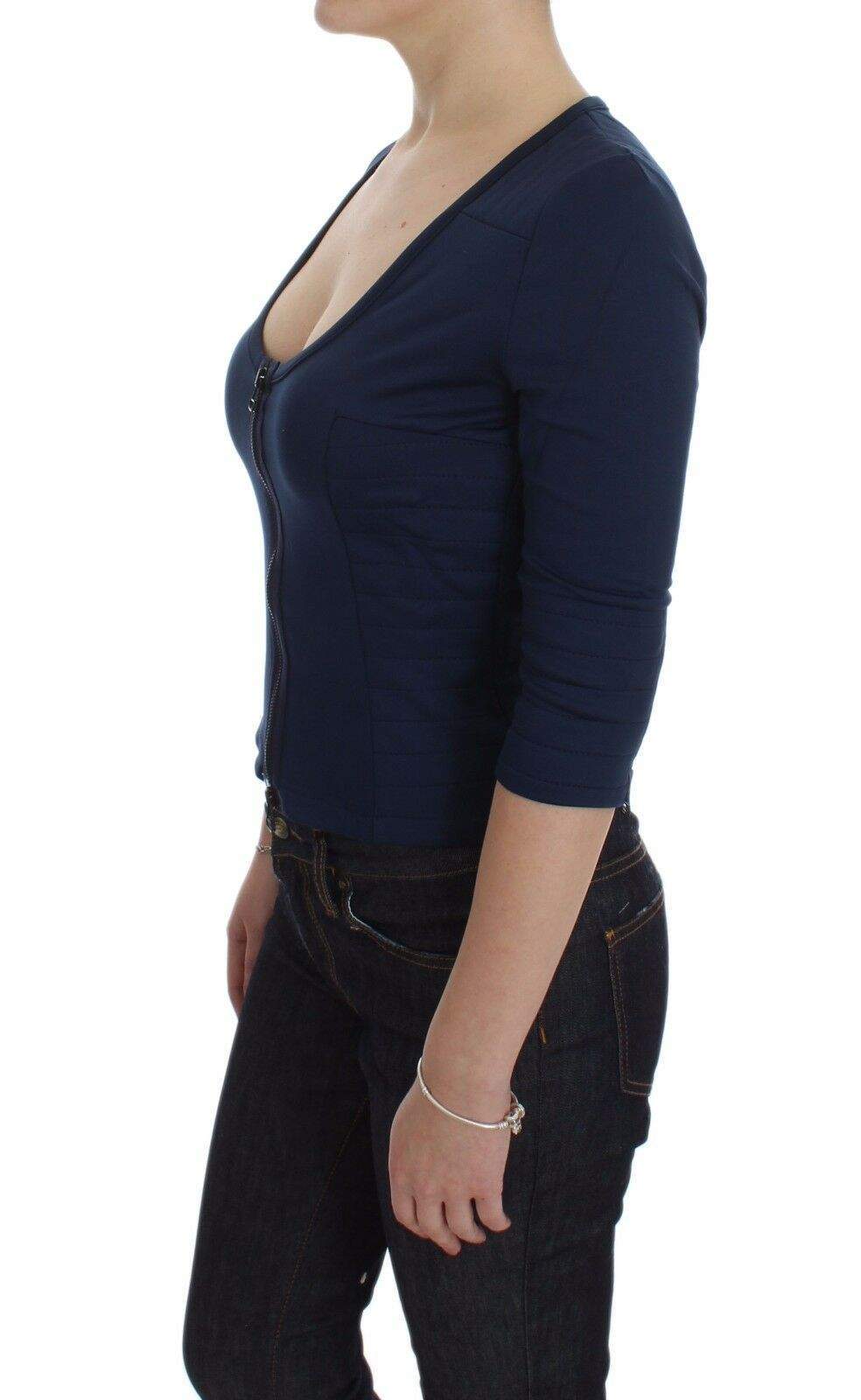 Exte Blue Cotton Top Zipper Deep Crew-neck Sweater #women, Blue, Exte, feed-agegroup-adult, feed-color-blue, feed-gender-female, IT40|S, Tops & T-Shirts - Women - Clothing, Women - New Arrivals at SEYMAYKA