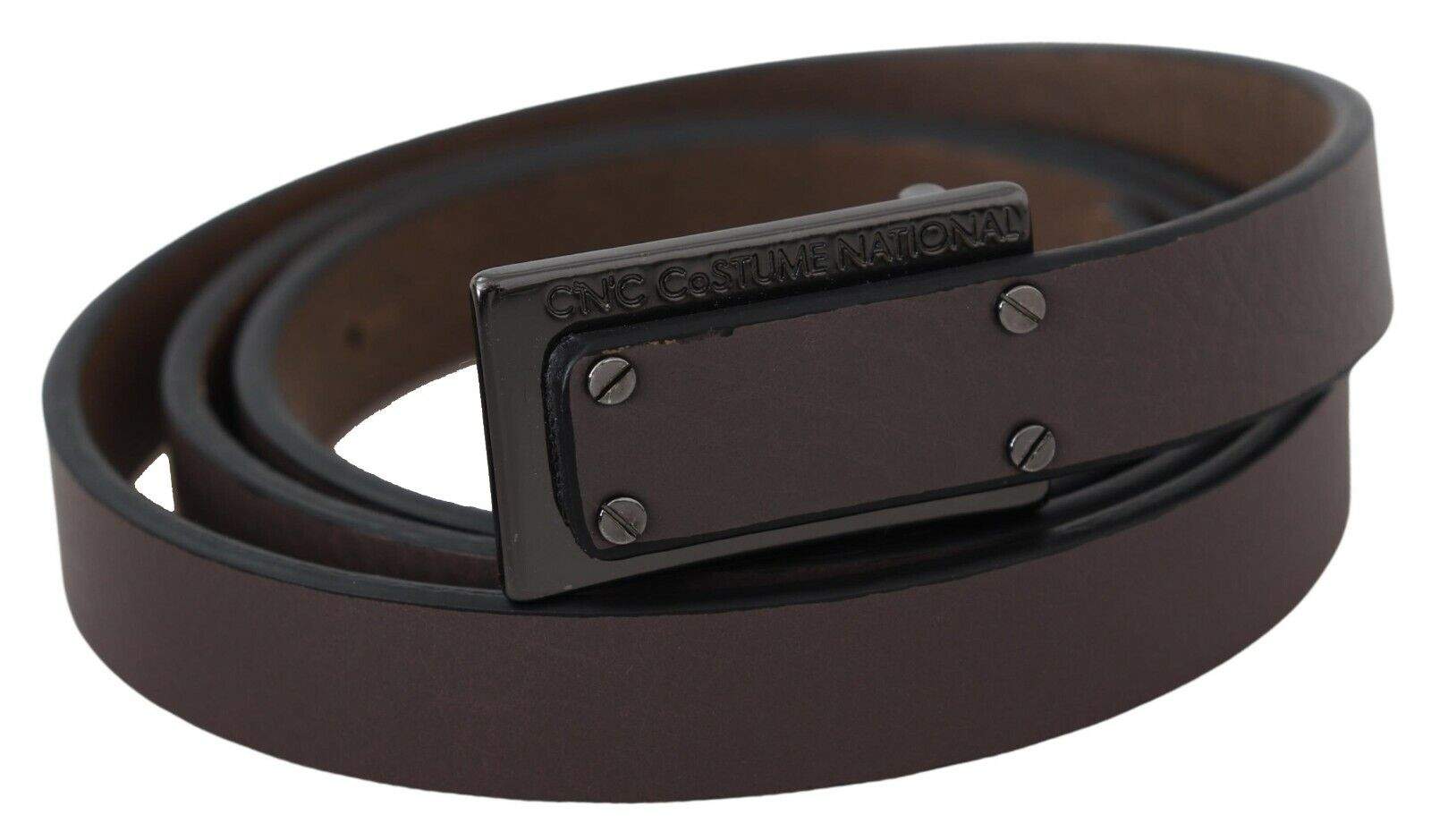 Costume National Brown Leather Tactical Logo Screw Buckle Belt