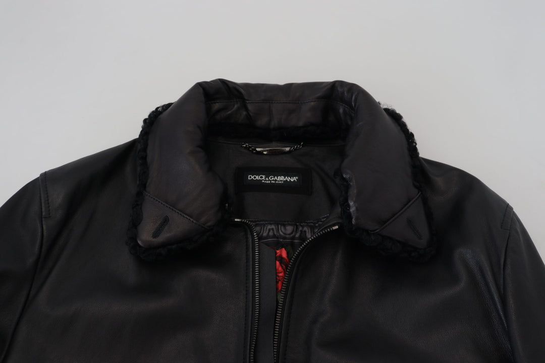 Experience the epitome of Italian craftsmanship with this sleek and stylish jacket from Dolce & Gabbana. The exquisite combination of premium leather with a luxurious silk lining ensures both comfort and elegance. Perfect for those who appreciate the finer things in life, this black collared jacket features a modern, zippered closure and a subtly embossed logo, offering functionality without compromising on style. Crafted in Italy, it’s an authentic statement piece for any discerning wardrobe.