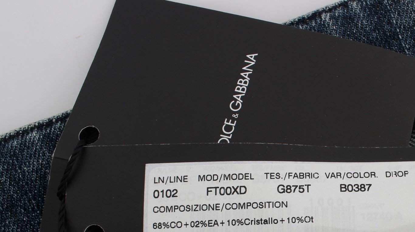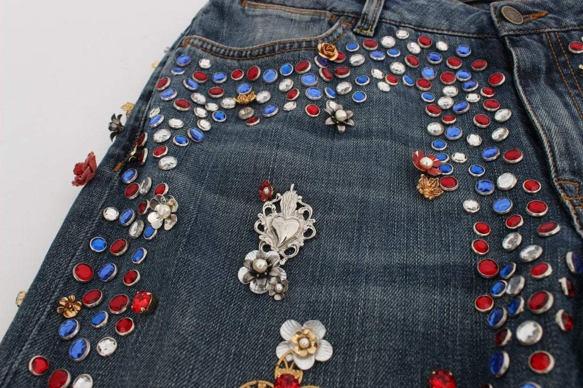 Gorgeous brand new with tags, 100% Authentic Dolce & Gabbana blue wash crystal heart Roses embellished enchanted Sicily boyfriend fit jeans. This item comes from the exclusive MainLine Dolce & Gabbana Collection.