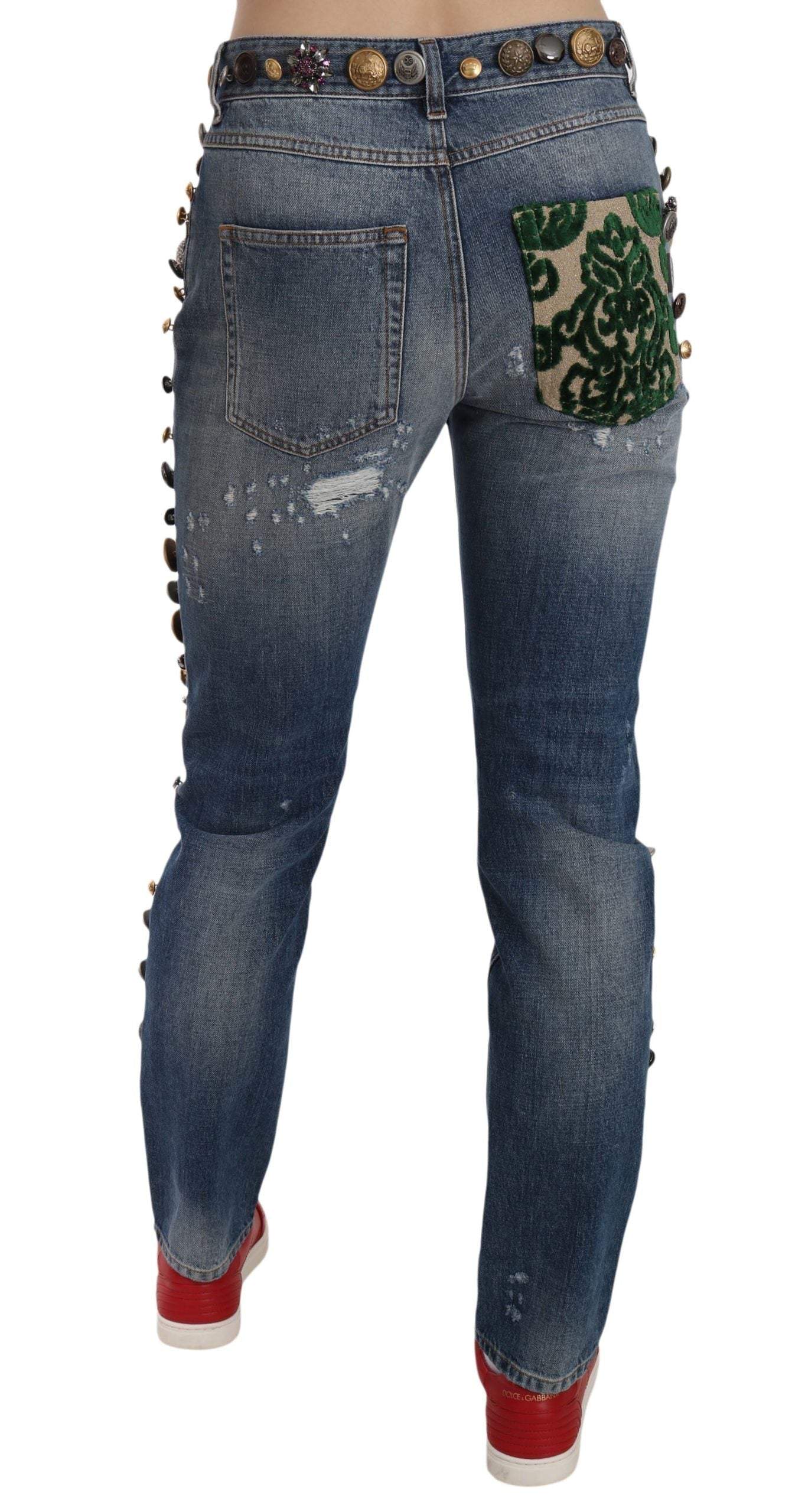 Dolce & Gabbana Distressed Embellished Buttons Denim Pants Jeans