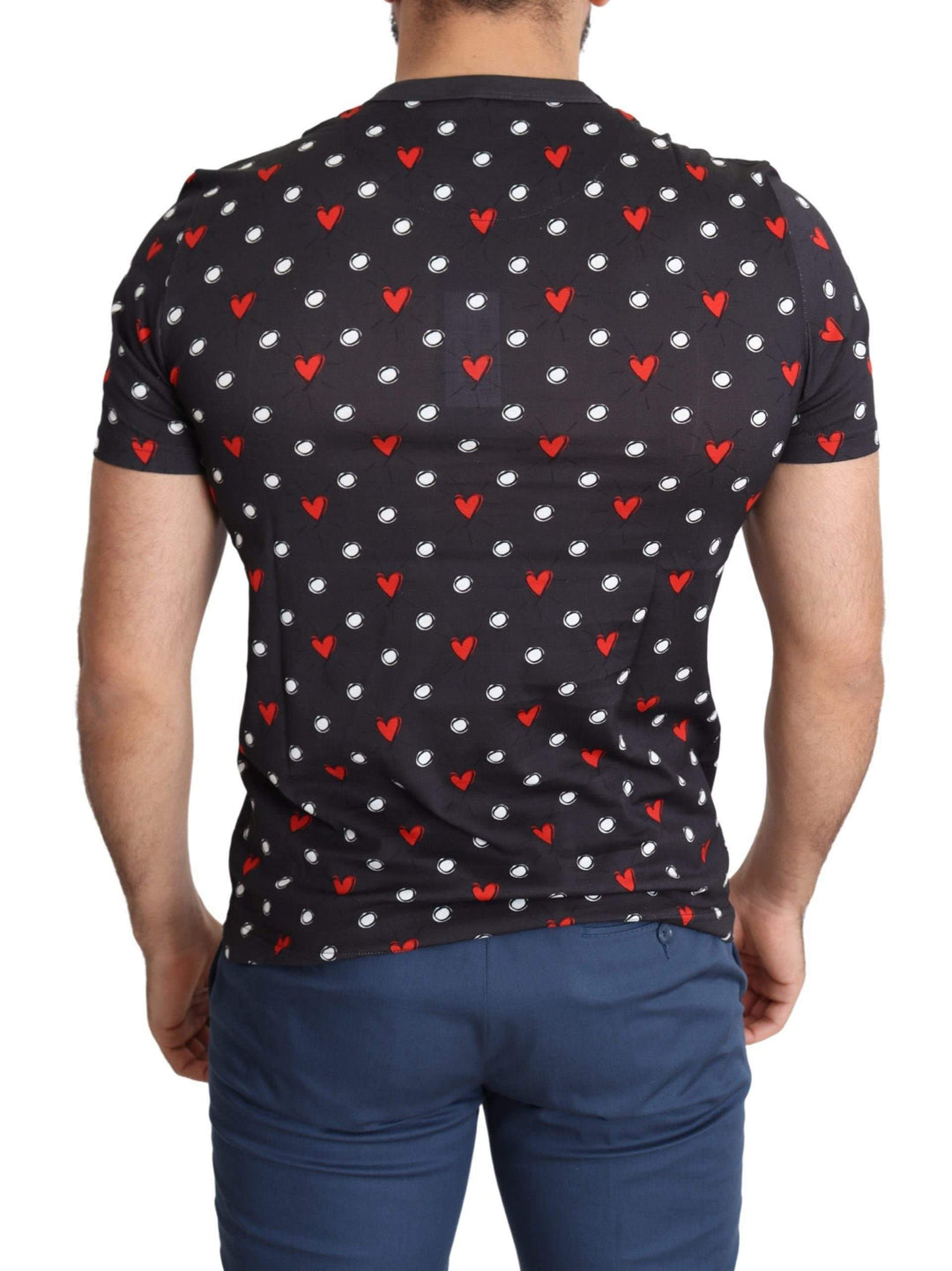 Gorgeous brand new with tags 100% Authentic Dolce & Gabbana dark gray t-shirt with hearts print features crew neck and short sleeves.