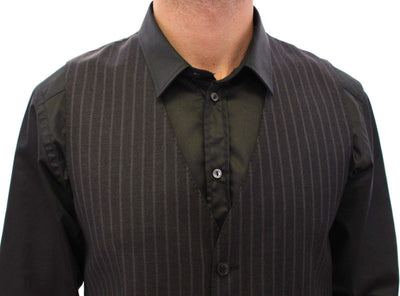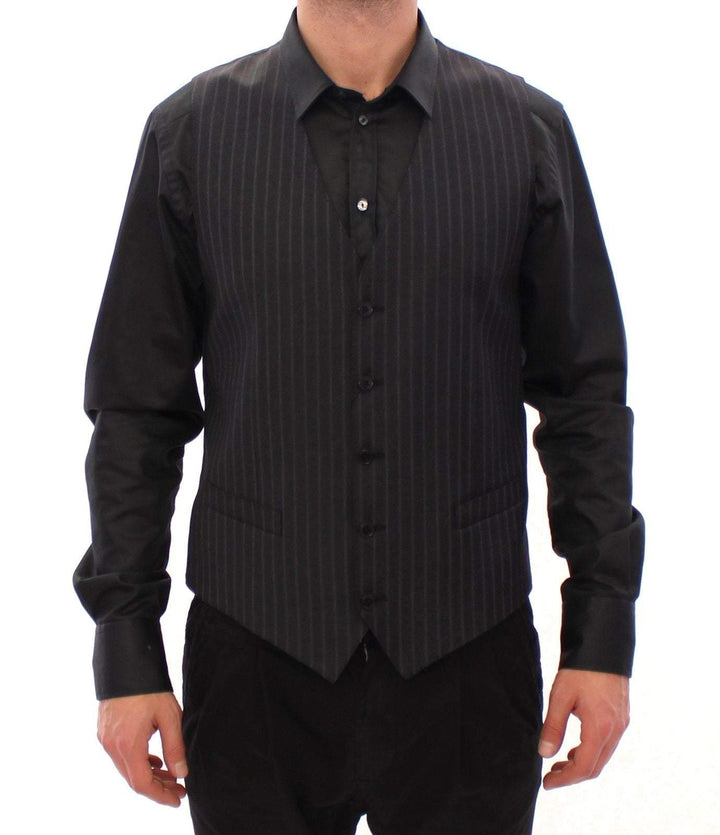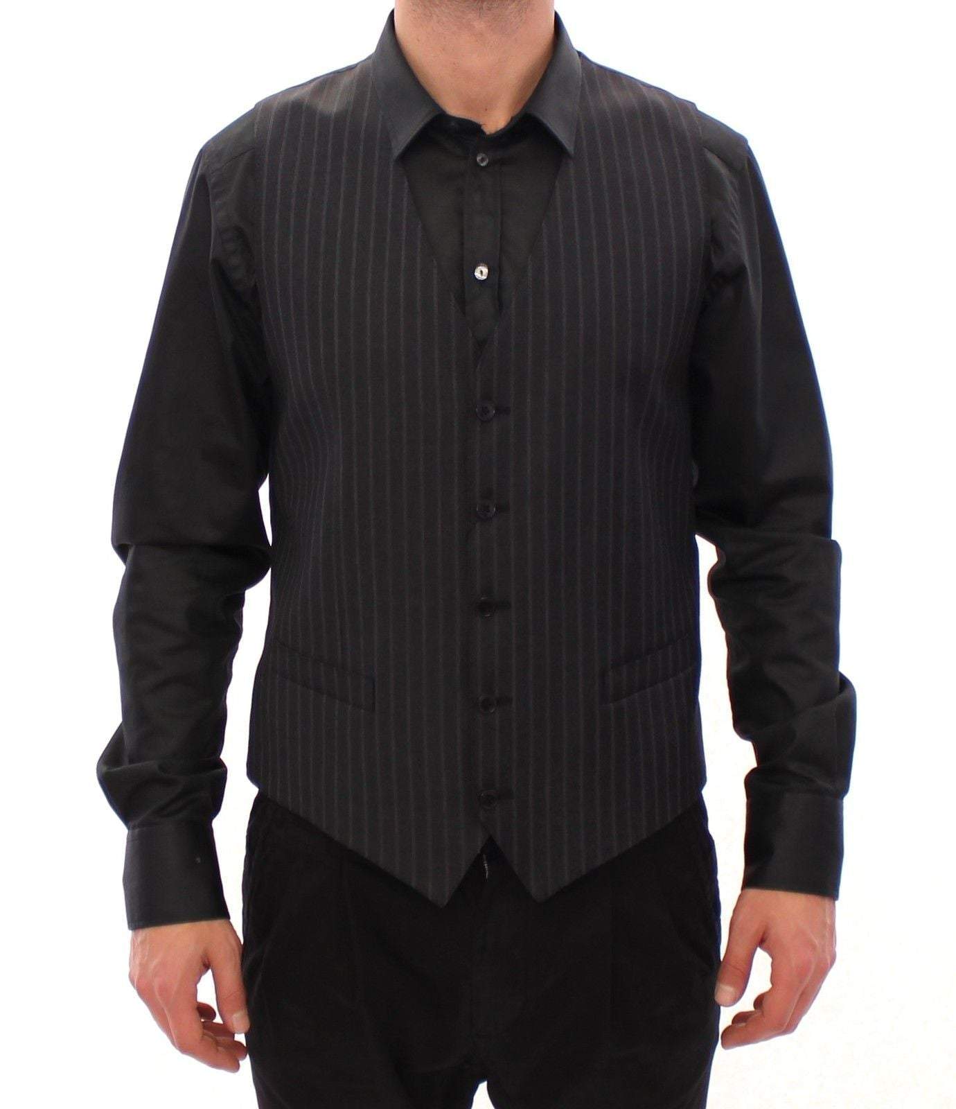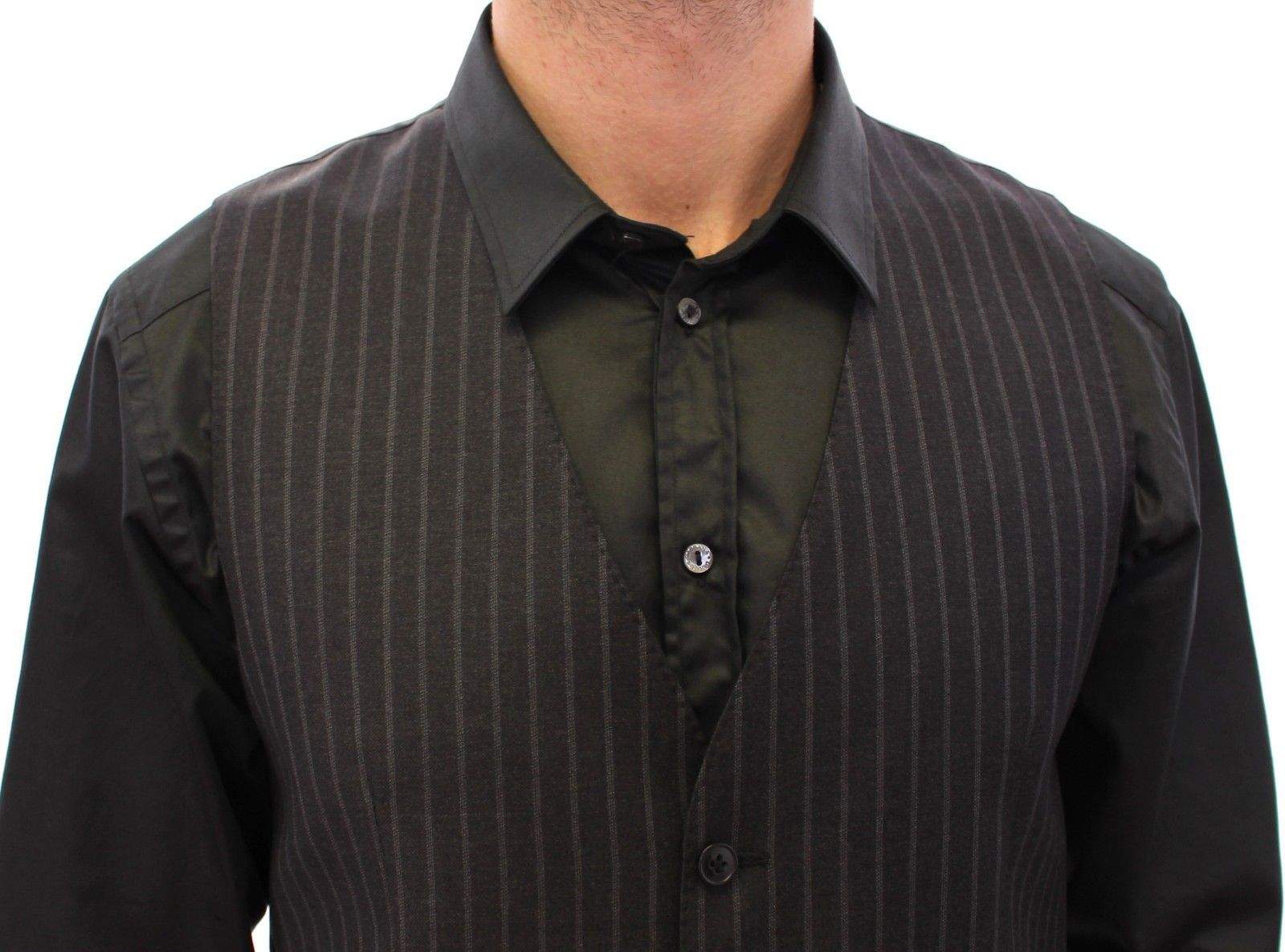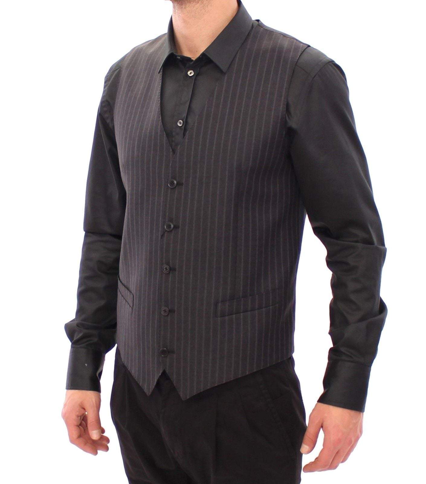 Dolce & Gabbana Gray Striped Wool Logo Vest Gilet Weste