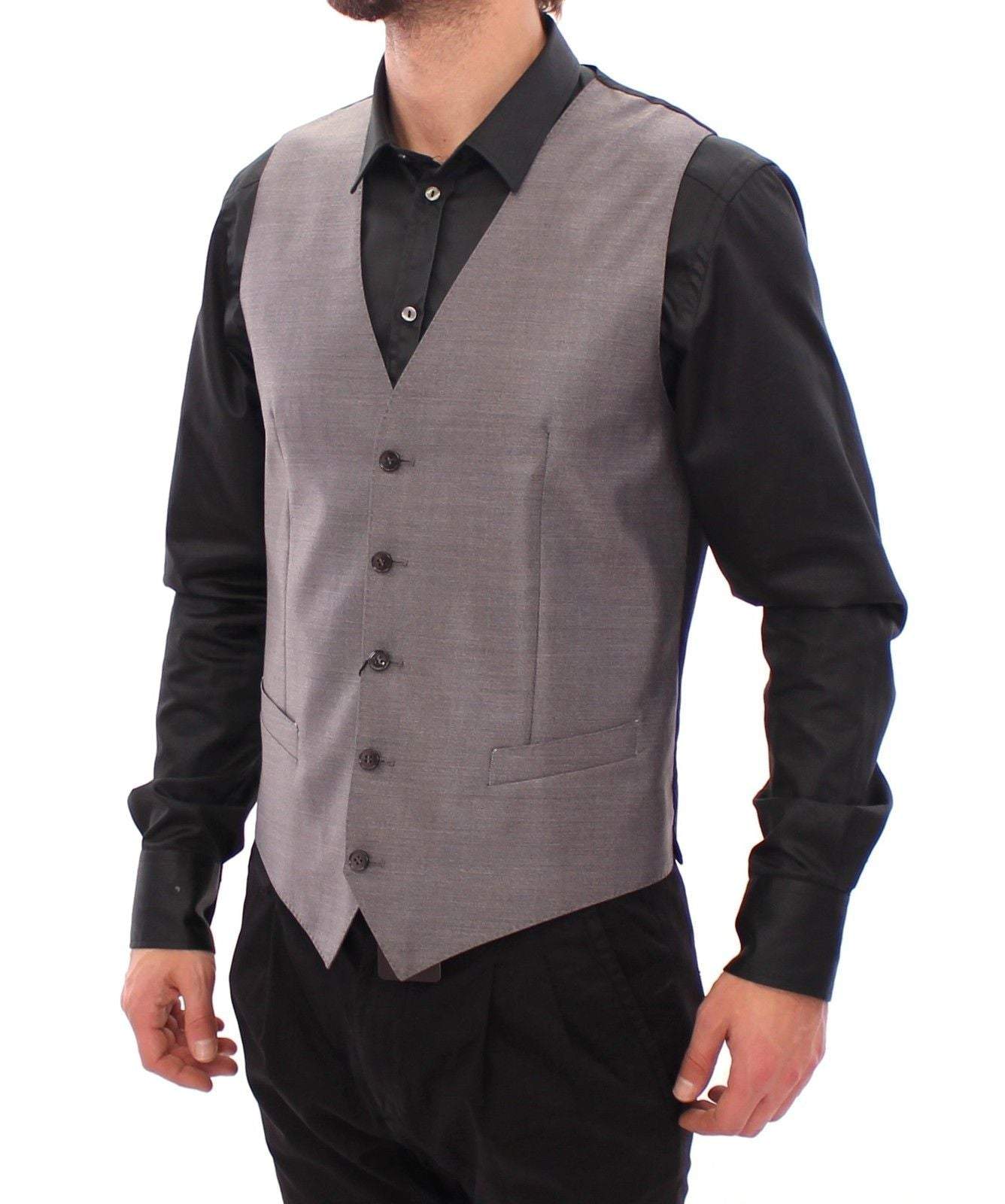 Dolce & Gabbana Gray Wool Formal Dress Vest Gilet Weste #men, Dolce & Gabbana, feed-agegroup-adult, feed-color-gray, feed-gender-male, feed-size-IT48 | M, Gray, IT48 | M, Men - New Arrivals, Vests - Men - Clothing at SEYMAYKA