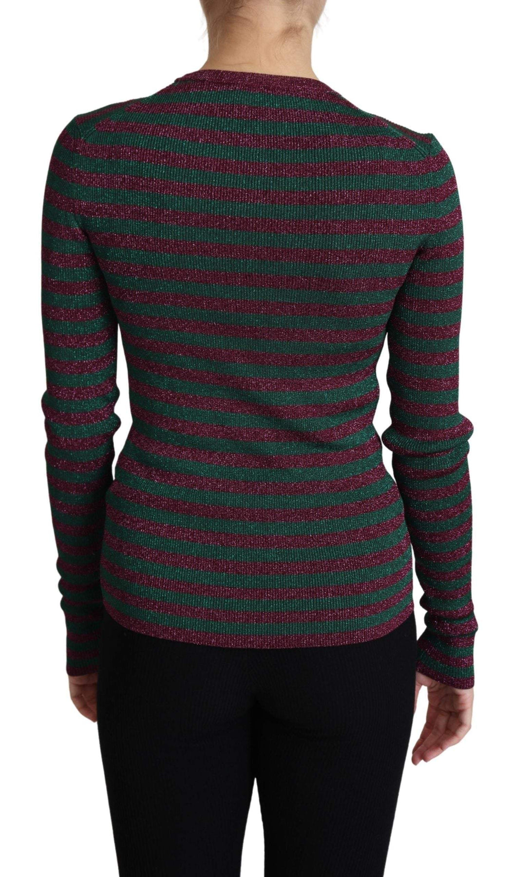 Gorgeous brand new with tags, 100% Authentic Dolce & Gabbana maroon and green striped viscose and polyester pullover crewneck sweater.