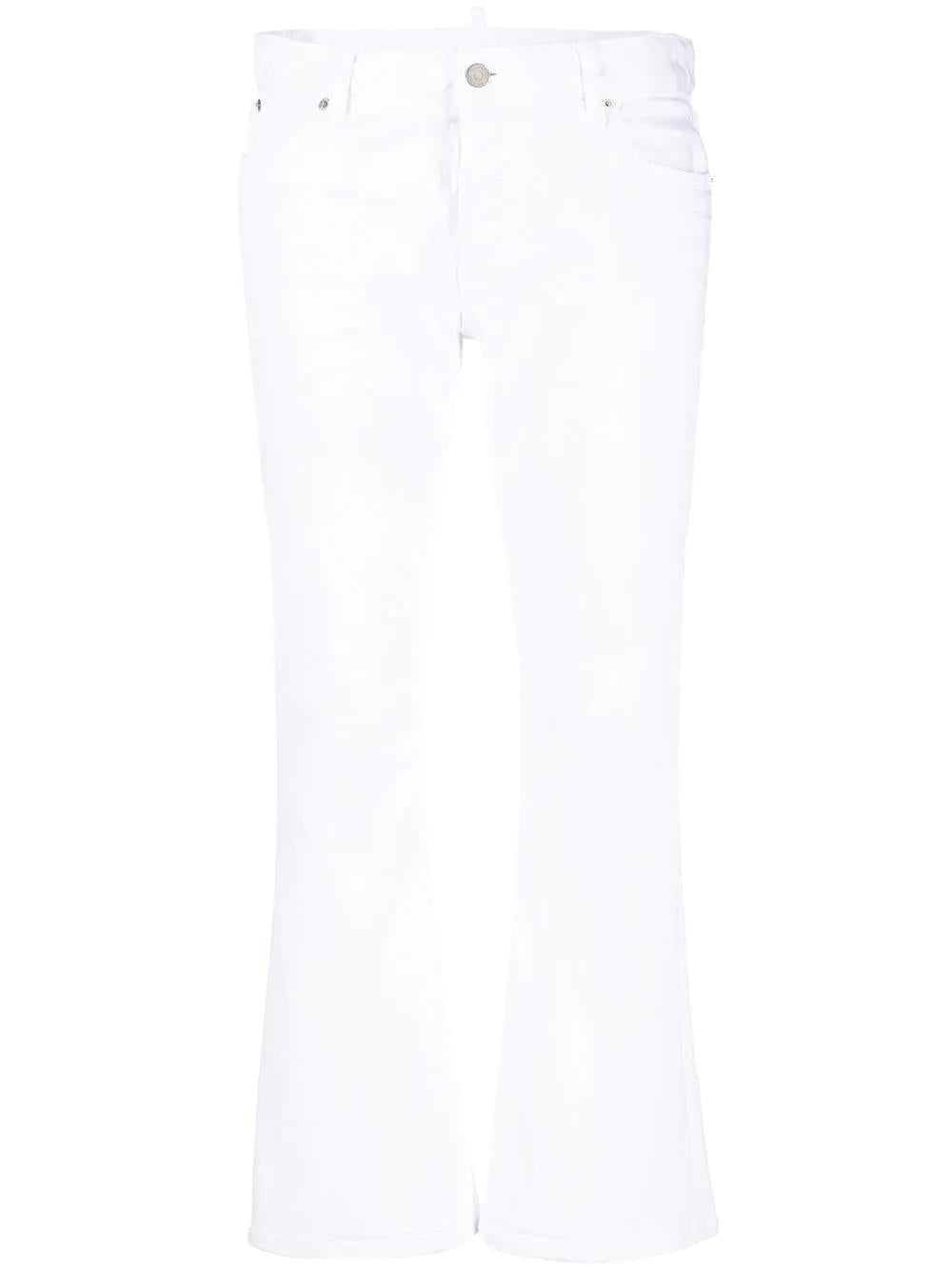 DSquared2 presents these bootcut cropped trousers in a straightforward tonal white design, featuring their signature logo patch attached at the front or a branded finish.