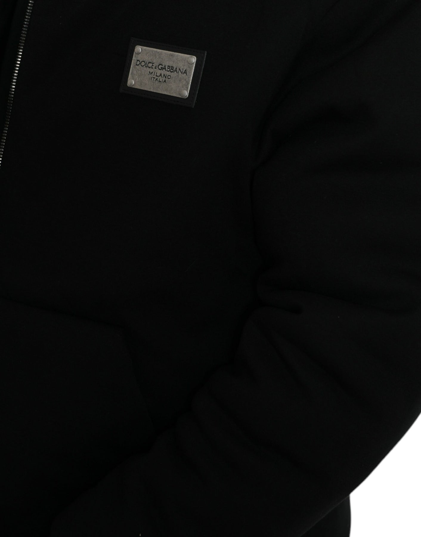 Experience the epitome of Italian craftsmanship with this chic and sophisticated Dolce & Gabbana bomber jacket. Exuding elegance with its sleek black hue, this jacket combines functionality with high-end fashion. Featuring a convenient hood, secure full-zip fastening, long sleeves, and practical pockets, it is designed to cater to both your style and comfort needs. The subtle logo plaque adds a touch of brand prestige, making it a standout piece in any wardrobe.