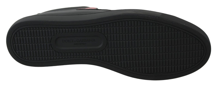 Step out in style with these exquisite sneakers crafted by the renowned Dolce & Gabbana. Boasting top-notch Italian craftsmanship, each pair promises unparalleled durability and comfort. Accentuated with a vibrant red sequined heart and subtle logo details, these black leather sneakers epitomize luxury with a touch of playful charm. Perfect for adding a refined edge to your casual ensemble.