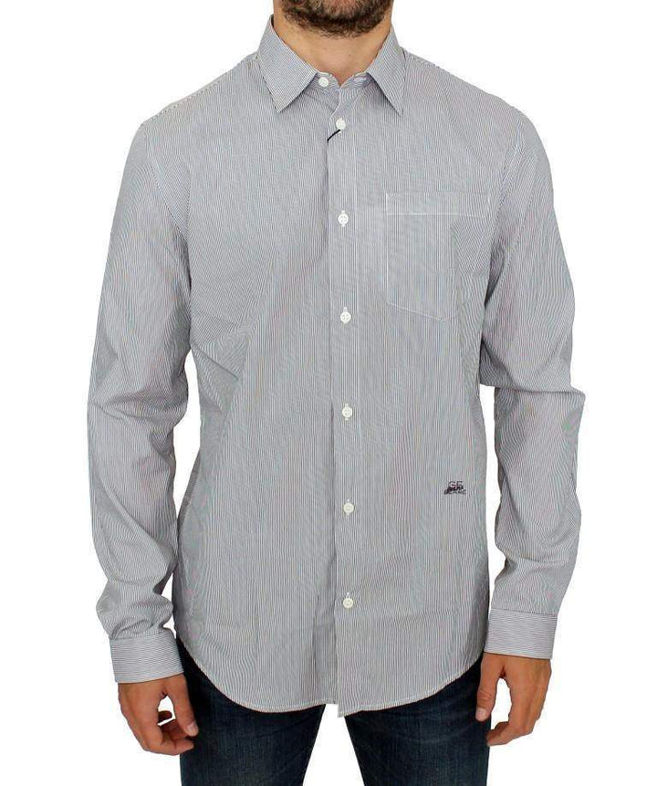 Absolutely stunning, 100% Authentic, brand new with tags GF Ferre Jeans Gray Striped cotton casual shirt.