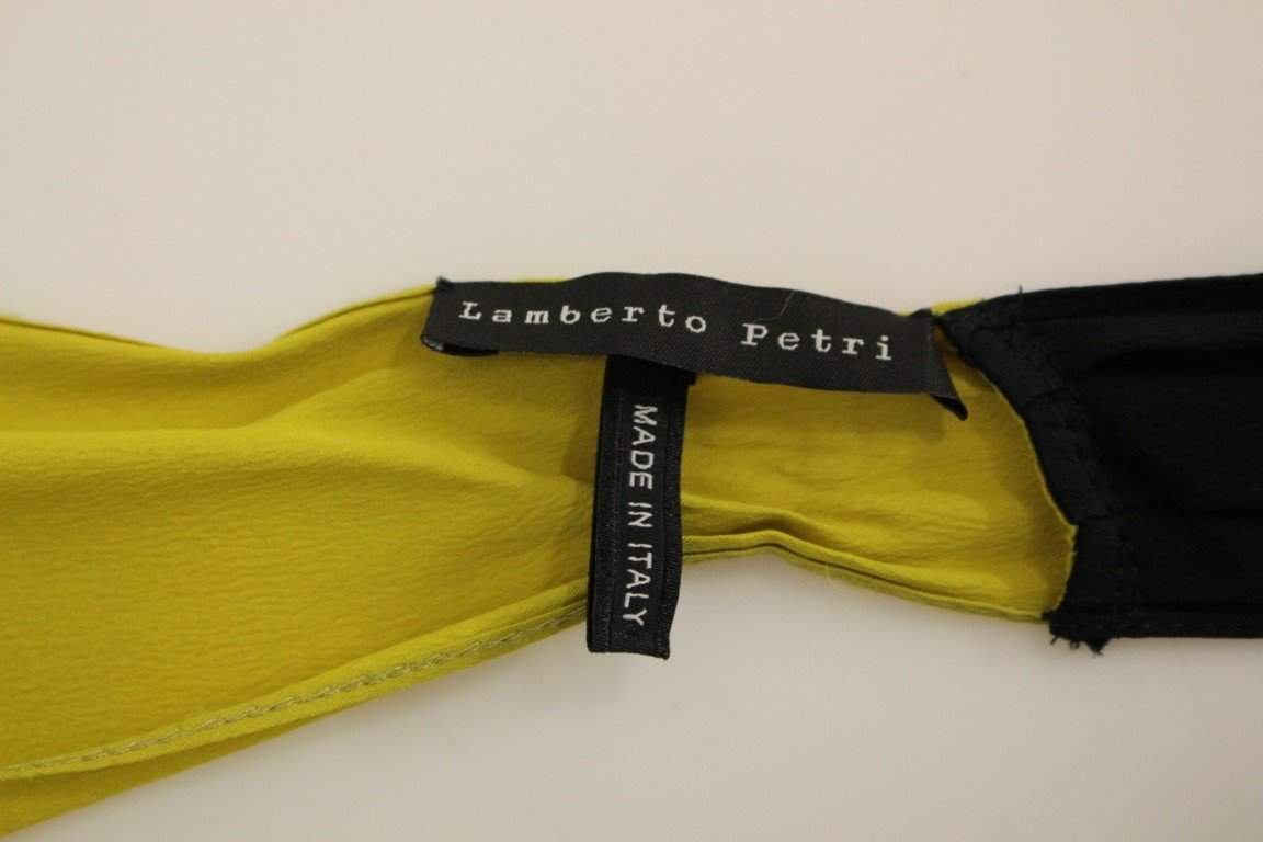Gorgeous brand new with tags, 100% Authentic Lamberto Petri Black Yellow Silk Dress. Best craftsmanship and a work of art.