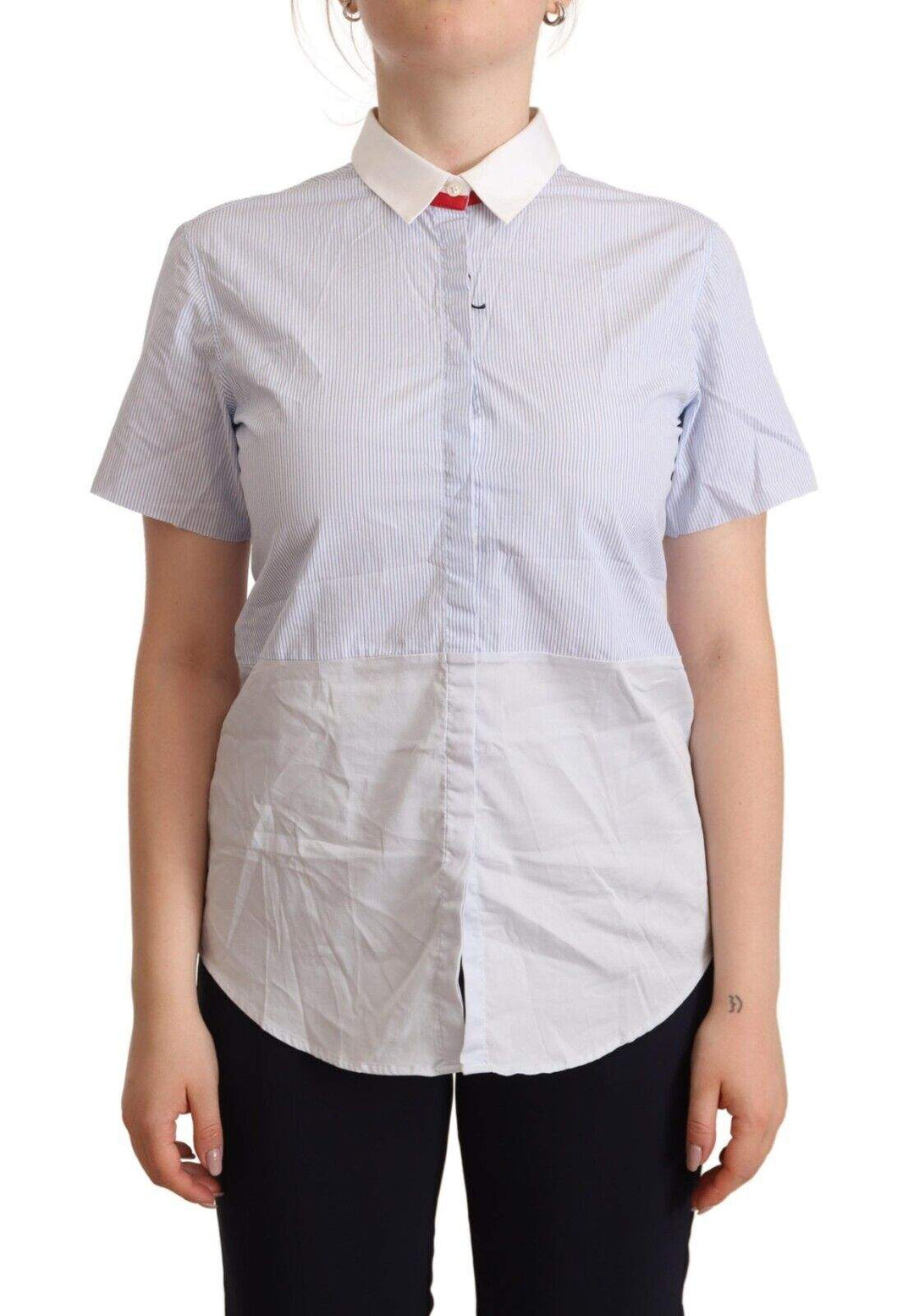 AGLINI Light Blue Cotton Short Sleeves Collared Polo Top AGLINI, feed-1, IT46|XL, Light Blue, Tops & T-Shirts - Women - Clothing at SEYMAYKA
