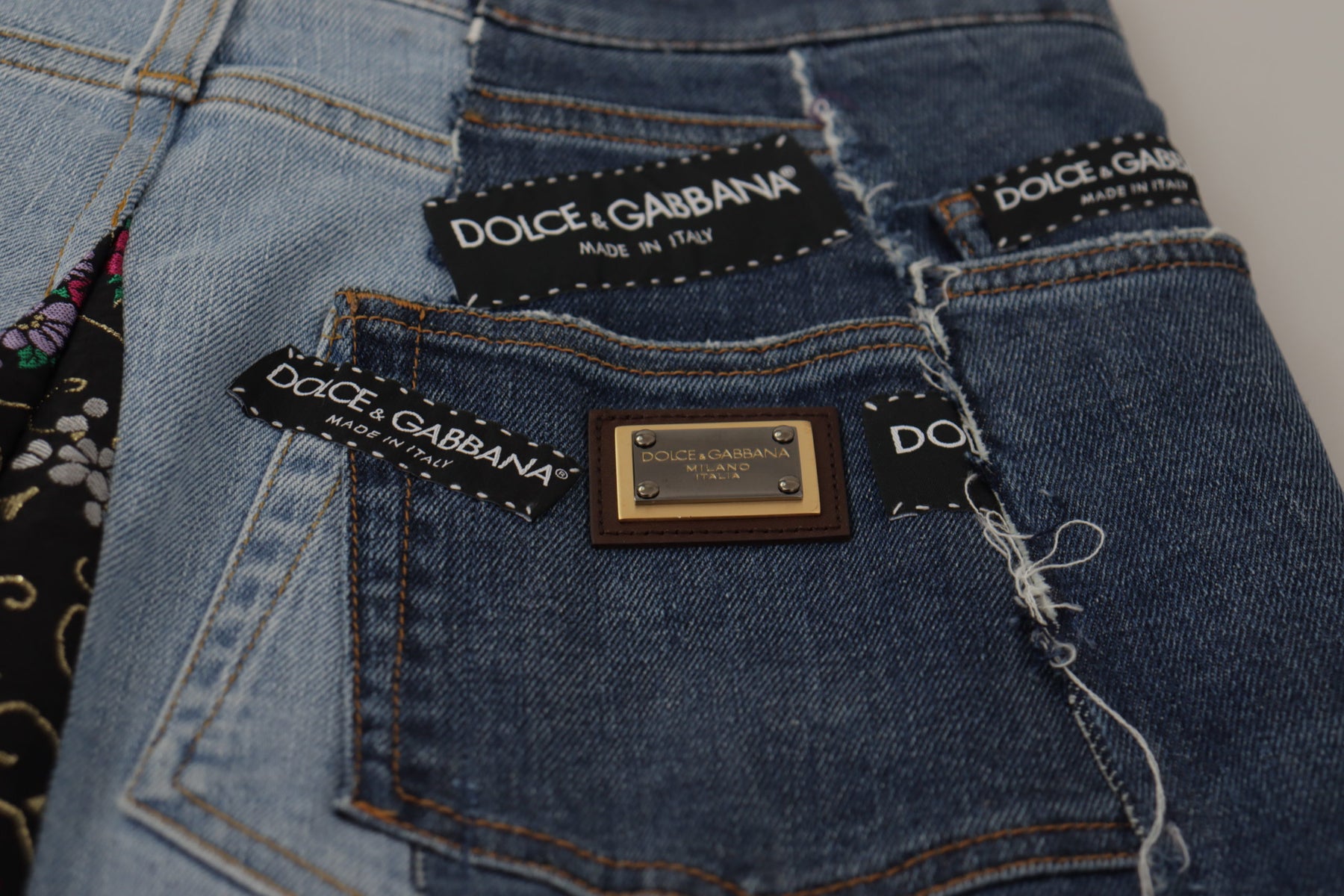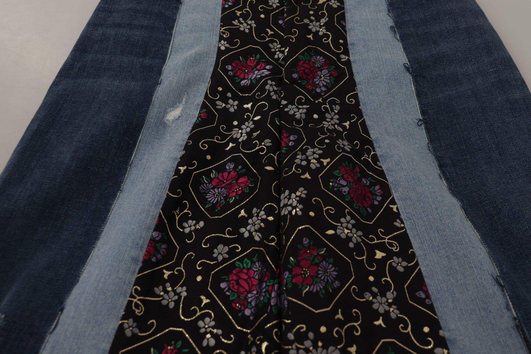 Dolce & Gabbana Multicolor Patchwork DG Fashion Wide Leg Denim Pant