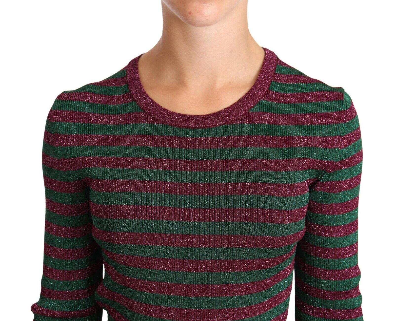 Gorgeous brand new with tags, 100% Authentic Dolce & Gabbana maroon and green striped viscose and polyester pullover crewneck sweater.
