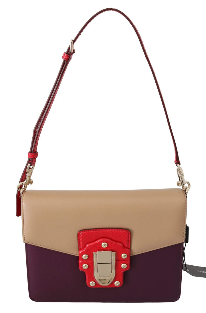 Dolce & Gabbana Purple Beige Red Leather Crossbody Purse Bag