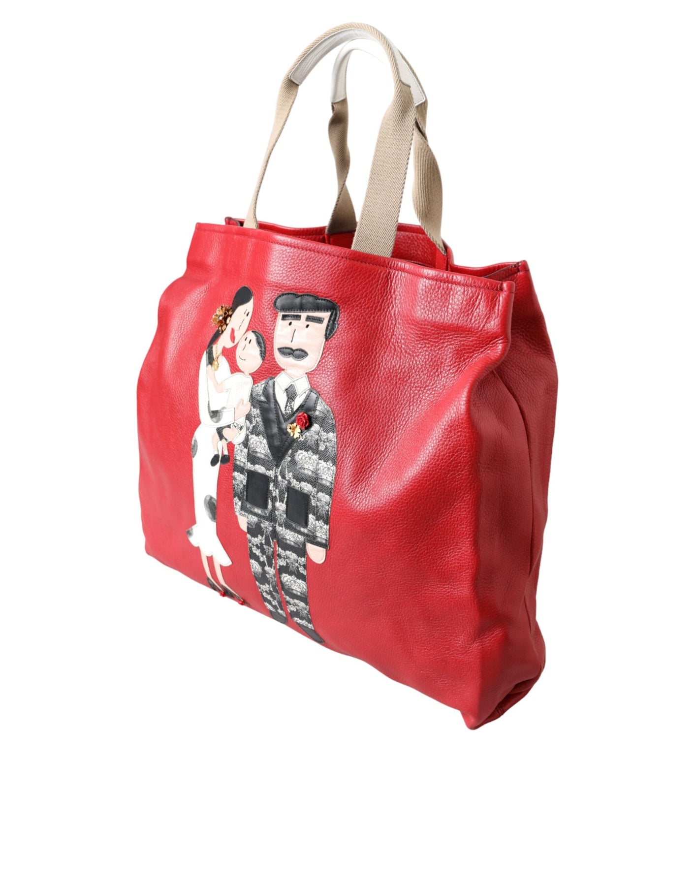 Absolutely stunning, 100% Authentic, brand new with tags Dolce & Gabbana red leather family patch shopping tote bag.