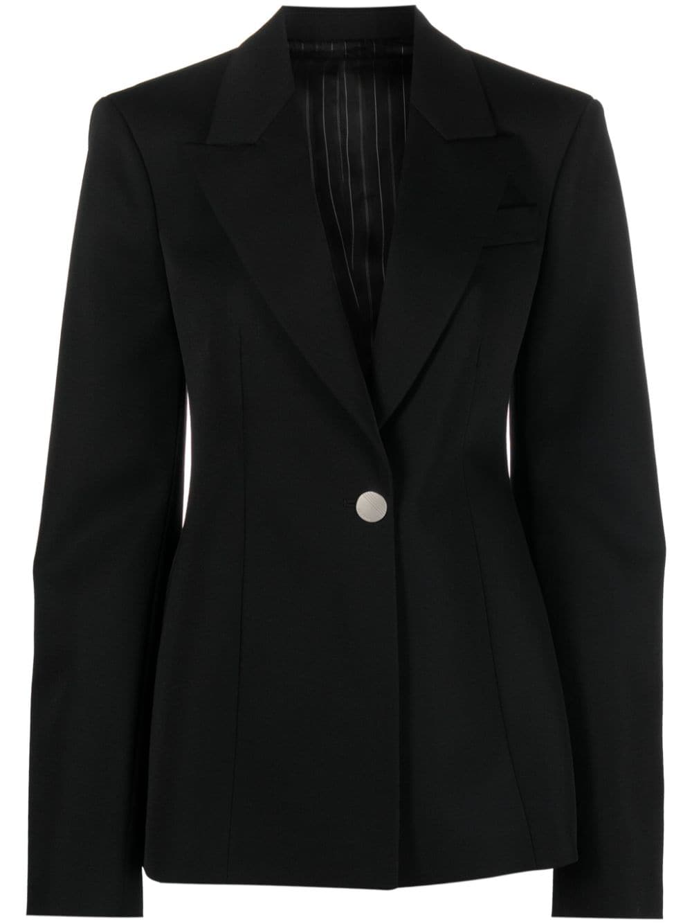 Spun in Italy from tailoring wool, this sleek black blazer reflects The Attico's modern take on timeless silhouettes. It cinches at the waist for an hourglass shape whilst logo-engraved silver-tone buttons at the cuffs and front add a recognisable flair.