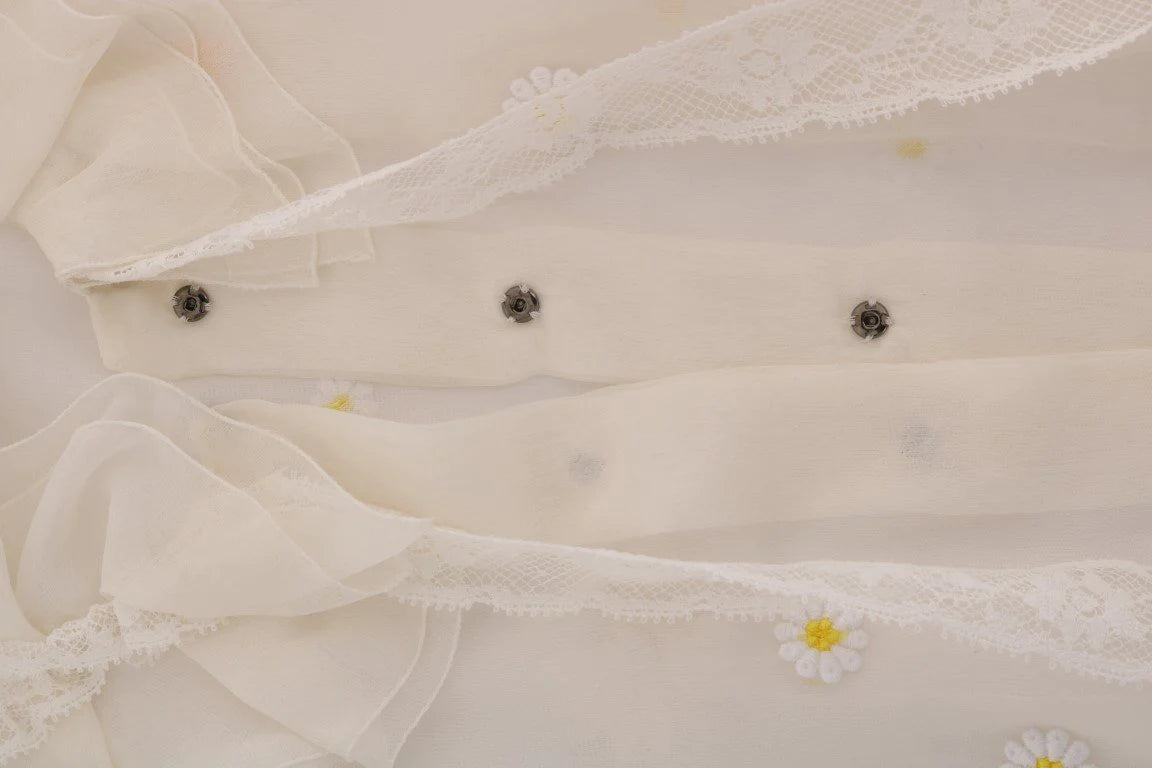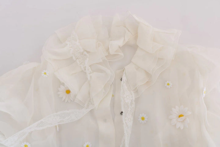 Gorgeous brand new with tags, 100% Authentic DOLCE & GABBANA white with daisy applique silk shirt blouse.