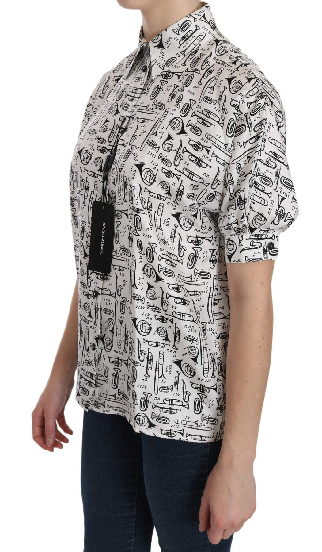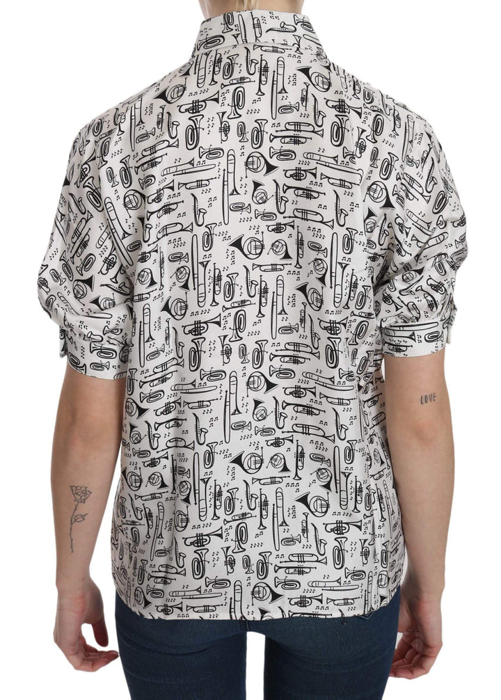 Absolutely stunning, 100% Authentic, brand new with tags Dolce & Gabbana Musical Instrument Print collared Top